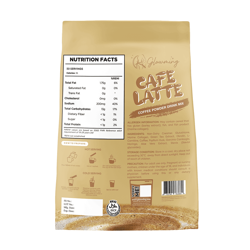 Cafe Latte is more than just a delicious coffee drink—it’s a wellness beverage that helps support digestion and metabolism. Infused with green tea extract, glutathione, and marine collagen, it promotes healthier skin and provides a gentle cleansing effect. Aloe vera and psyllium husk help reduce bloating, while Garcinia Cambogia and L-Carnitine support weight management. This creamy drink nourishes your body from the inside out, leaving you feeling refreshed and revitalized.